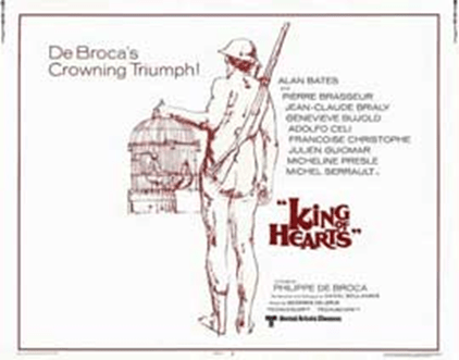 What strikes me on this viewing of King of Hearts is the heartbreakingly charming performance of Genevieve Bujold. I suppose Ms. Bujold will be remembered primarily for her Anne of a Thousand Days, and she will forever try to make folks forget Earthquake, but for me her fascination is in my pondering what kind of journey takes the Coquilotte in King of Hearts to the Dr. Nancy Love in the quirky Choose Me. The journey may not be as long as I first assumed. Both characters profess a worldly knowledge (sex) and a casual proficiency (sex) that neither actually possesses.