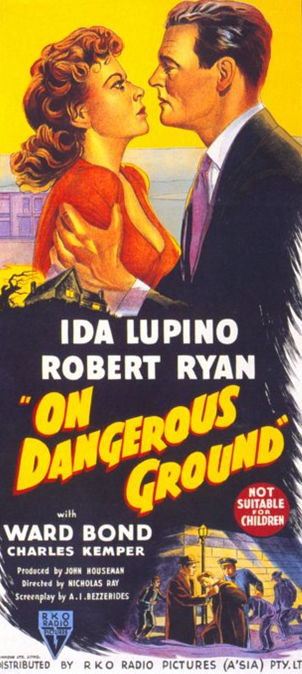 On Dangerous Ground features Ida Lupino, Nicholas Ray, Robert Ryan, and a raging Ward Bond; strong ingredients in this noir that ranges from the alleys of New York City to the snowy hilltops of Upstate New York.