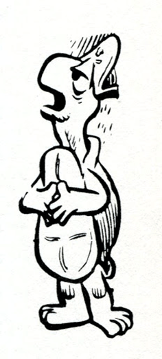 Porkypine is a paragon of stability among the denizens of Okefenokee Swamp. He is changeless. He scowls and “don’ like nobody enough to hug’em.” When asked if he sticks hisself when he rolls over in bed at night, he replies; “Yes, and I’m glad! ……don’ like nobody……”