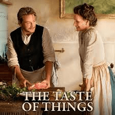 THE TASTE OF THINGS (2023) is delicious to watch. It’s fun to see Madame Binoche cooking again. I first saw her in Krzysztof Kieslowski’s 1993 mesmerizing film; THREE COLORS: BLUE, and then his earlier THE UNBEARABLE LIGHTNESS OF BEING (1988). A couple of years later I won a huge lobby poster of BLUE on eBay. I still haven’t found a space of suitable vastness to hang it, but I harbor hopes…perhaps a new wing to a house already too roomy for two dreamers. She cooked beautifully for Johnny Depp, Judy Dench, and Alfred Molina in CHOCOLAT (2000). Hell, I even thought she was the best thing in the 2014 GODZILLA – better than the big guy himself.
